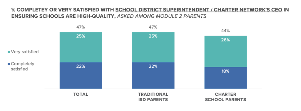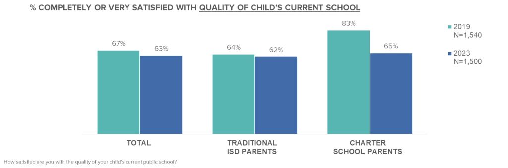 There has also been a small decrease in Houston parents’ satisfaction with the quality of their child’s school overall, but the decline has been especially significant among parents who have chosen charter schools.