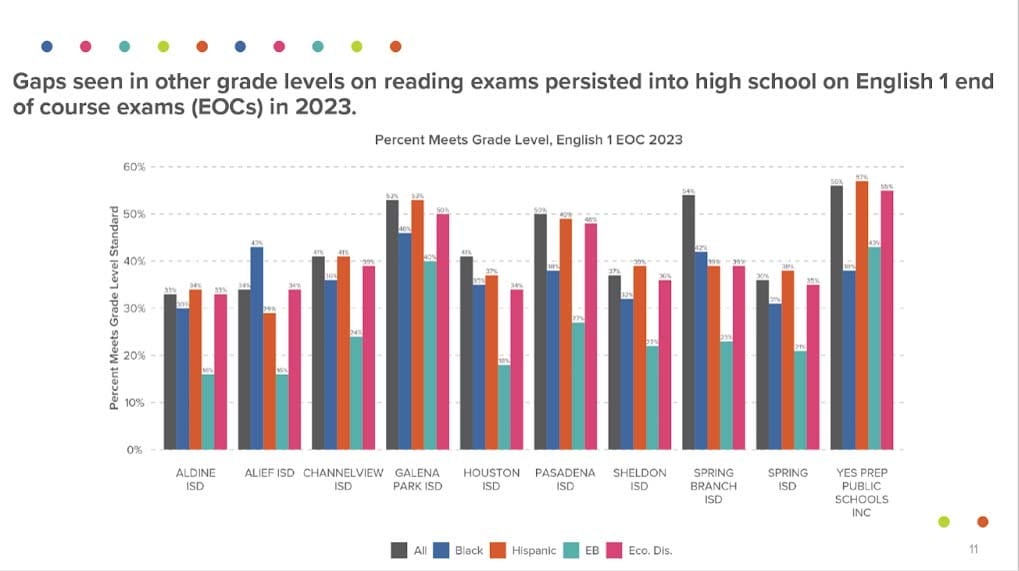 Gaps seen in other grade levels on reading exams persisted into high school on English 1 end of course exams (EOCs) in 2023.