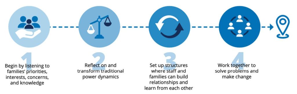 - Am I seeking input from, and do I listen to and value, what all families have to say? (Respect)