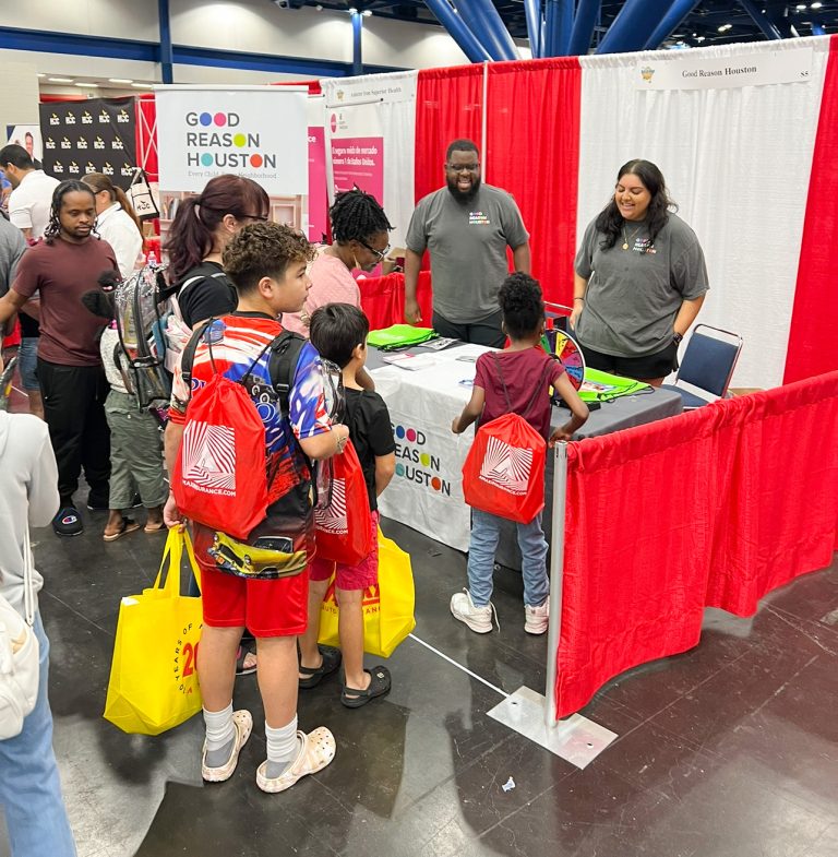 Good Reason Houston sponsored and participated in the event, providing free backpacks, pens, stickers, and information about improving education in Houston.