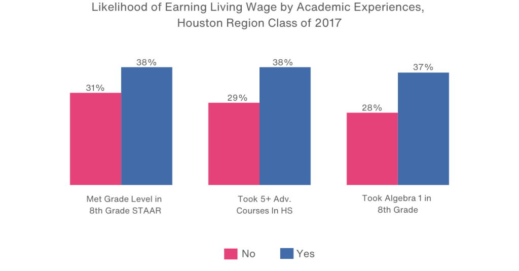The first ConnectEd newsletter of the year is a special one because, as a valued subscriber, you’re among the first to view the findings from our latest research on what influences long-term success after high school. Previous newsletters revealed alarming trends—not enough Houston graduates are earning a living wage after high school. Our newly published research adds to this work by showing which experiences in grades 8-12 are most likely to lead to long-term success and offers actionable insights to ensure better outcomes for every child in every neighborhood.